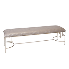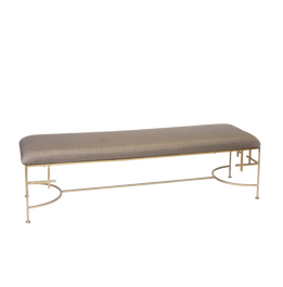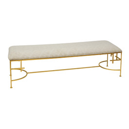 60"L Hammered Gold Leaf Bench with Beige Linen Upholstery Seat Height: 18"