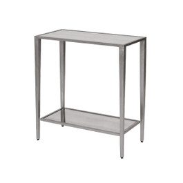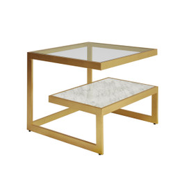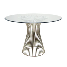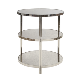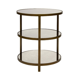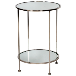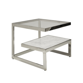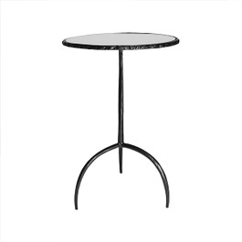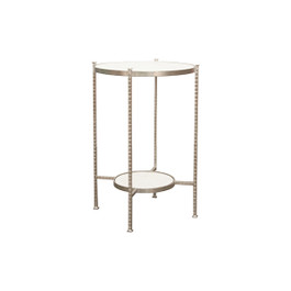NICKEL SIDE TABLE WITH GREEK KEY DETAIL & WHITE MARBLE TOP *PRICES LISTED ONLINE REFLECT ACCURATE PRICING Diameter: 20"